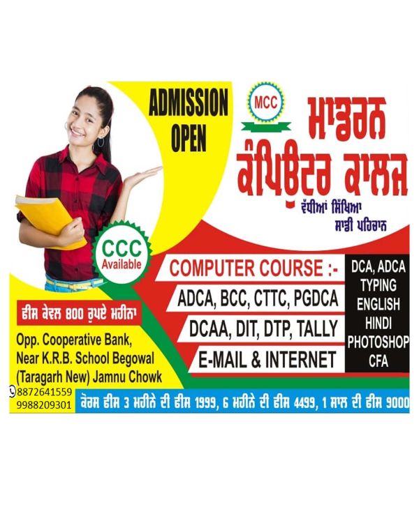 The Modern Computer College (MCC) Computer Education, Distance Education Institute of with brand name MCC started its Journey in March 2002. The main function of the Trust is to provide higher technical education for every group of urban and rural areas to get success in computer revolution which is the main dream of Indian Govt. MCC is a non Commercial organization engaged in the work of social welfare, started with a mission to education service and spread literacy to all class of people.